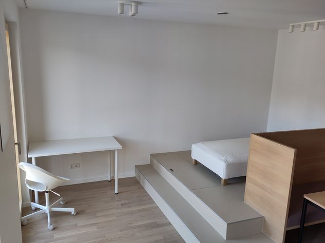 Die Zimmer sind ausgestattet mit einem Bett inkl. Lattenrost und Matratze (ohne Bettdecken, Kissen und etc.), Nachttisch, Schreibtisch, Bürostuhl, Kleiderschrank, Regal, Sessel. Mit Ausnahme von kleineren Einrichtungsgegenständen können keine eigenen Möbel mitgebracht oder untergestellt werden.