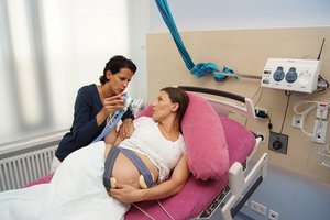 Die CardioTokoGraphie ist der "Herzton-Wehen-Schreiber", der über zwei Knöpfe, die auf Ihrem Bauch mit Gurten befestigt werden, die Herztöne des Babys und die Wehen misst und als Kurven aufzeichnet. Wir haben bei uns auch die Möglichkeit des kabellosen CTGs, sodass Sie während der Ableitung herumlaufen können. Natürlich können wir auch während des Entspannungsbads und bei Wassergeburten mit modernen CTG-Geräten die Herztöne ableiten.