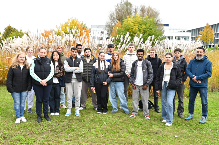 Die 16 Schülerinnen und Schüler der Edith-Stein-Schule Ravensburg gemeinsam mit der klinischen Pflegelehrerin Annette Sonntag (zweite von links) und ihren Lehrkräften beim Besuch im St. Elisabethen-Klinikum.