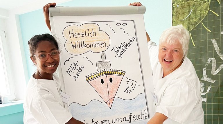 Auf dem Programm stehen etwa Patientenbeobachtung, Erste Hilfe oder Pflegeübergaben. So wächst Schritt für Schritt sowohl das praktische Können als auch das Fachwissen. Für die MFA-Auszubildenden beginnt eine dreijährige, vielseitige Ausbildung, die sie für Tätigkeiten in Ambulanzen, Praxen und Funktionsbereichen qualifiziert.